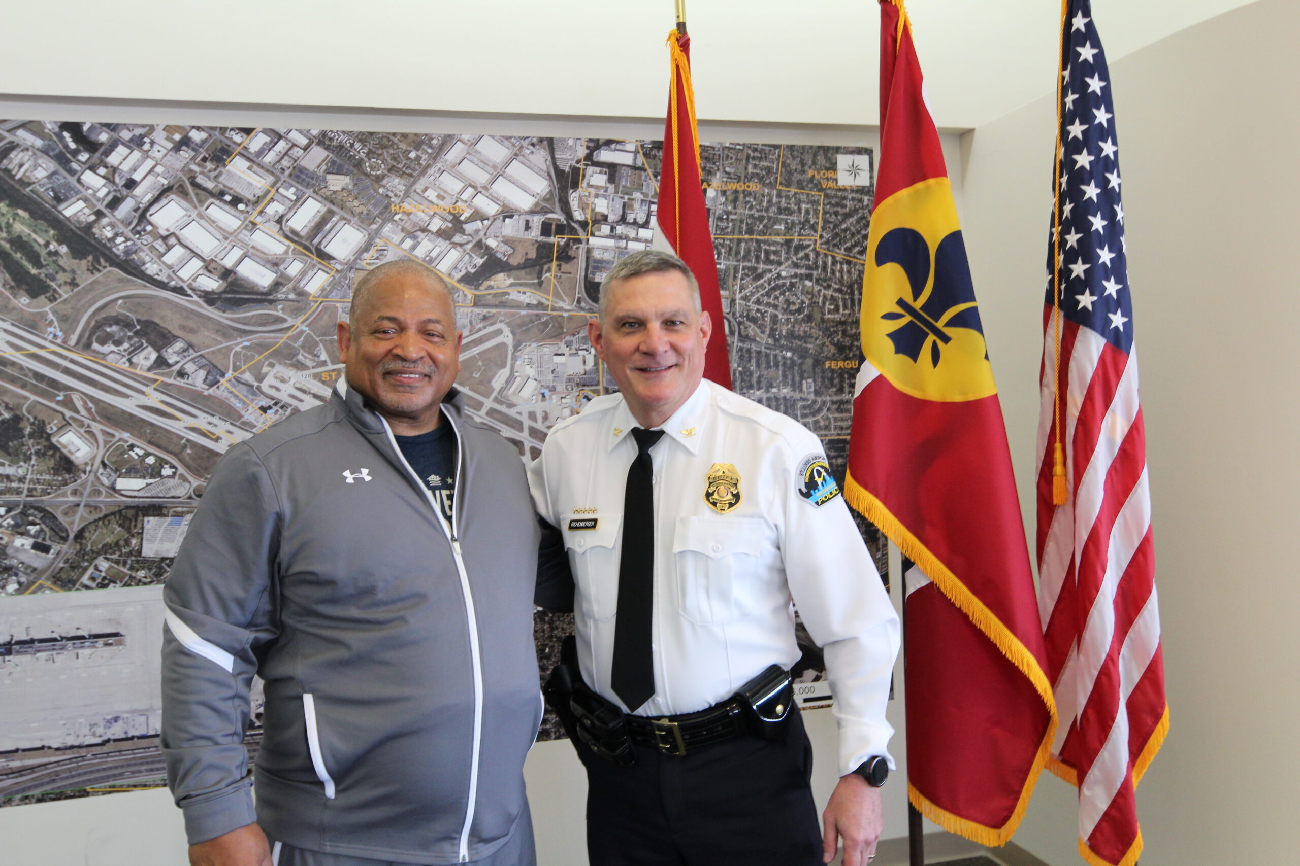 (From left to right in photo) Retired Lt. Troy Smith and Chief Brian Richenberger (St. Louis Lambert International Airport Police Chief)
