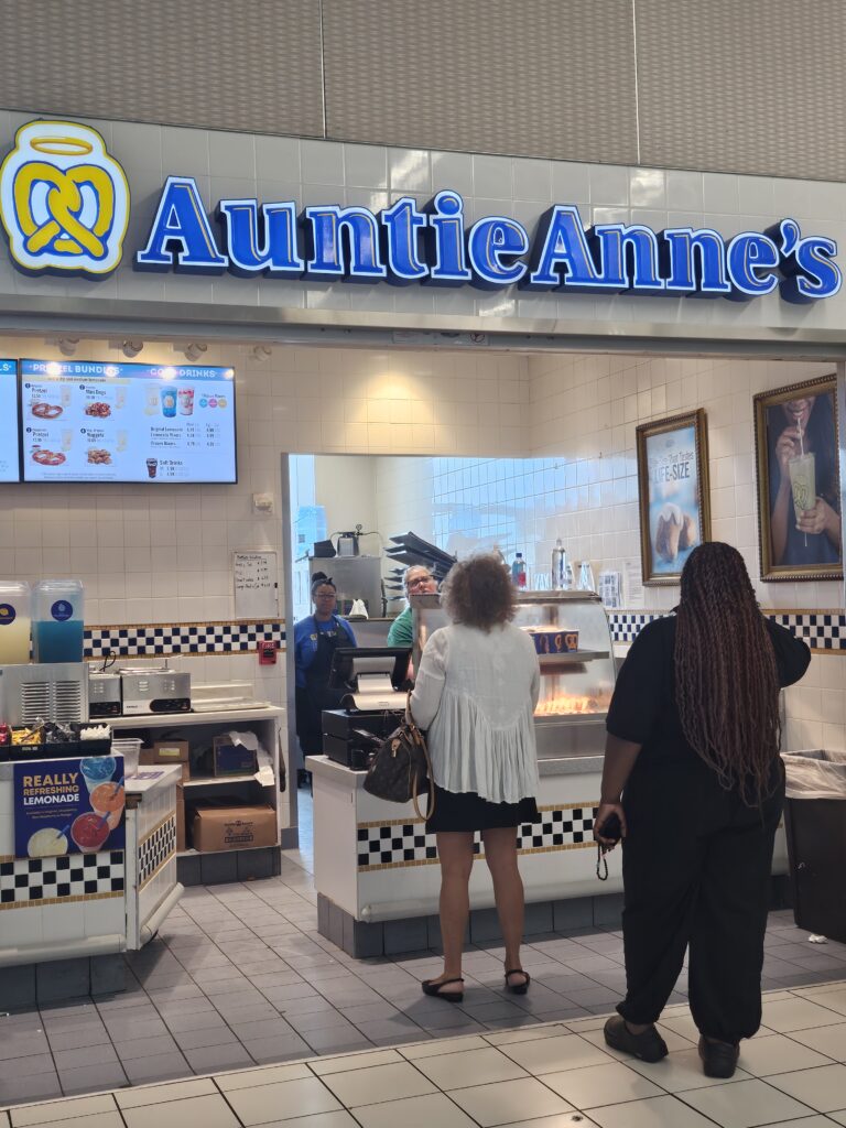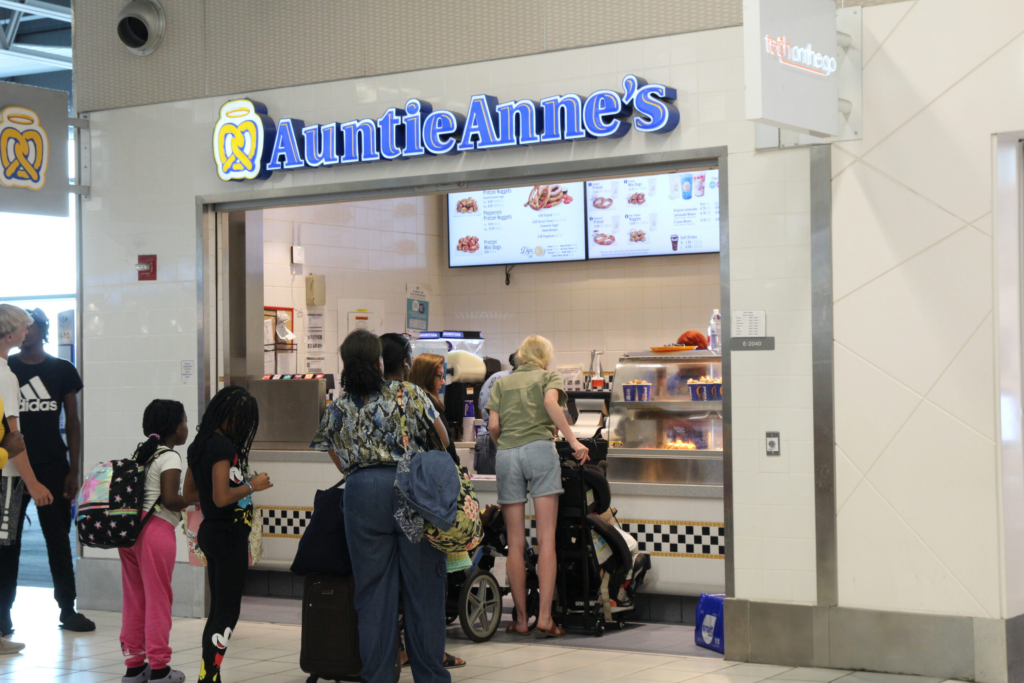 Back To List Auntie Anne's Menu World famous hand-bakes pretzels. Daily, 10am – 8pm E Gates, at E12 Open in Maps Website Other Options Hours Vary Hudson LOCATION E Gates, at E36 Details >: Hudson – E36 Hours Vary Pei Wei LOCATION E Gates, at E6 Details >: Pei Wei Hours Vary Midtown Cafe LOCATION E Gates, at E38 Details >: Midtown Cafe – E38 Open 4Hands Peacemaker LOCATION E Gates, at E6 Details >: 4Hands Peacmaker – E6