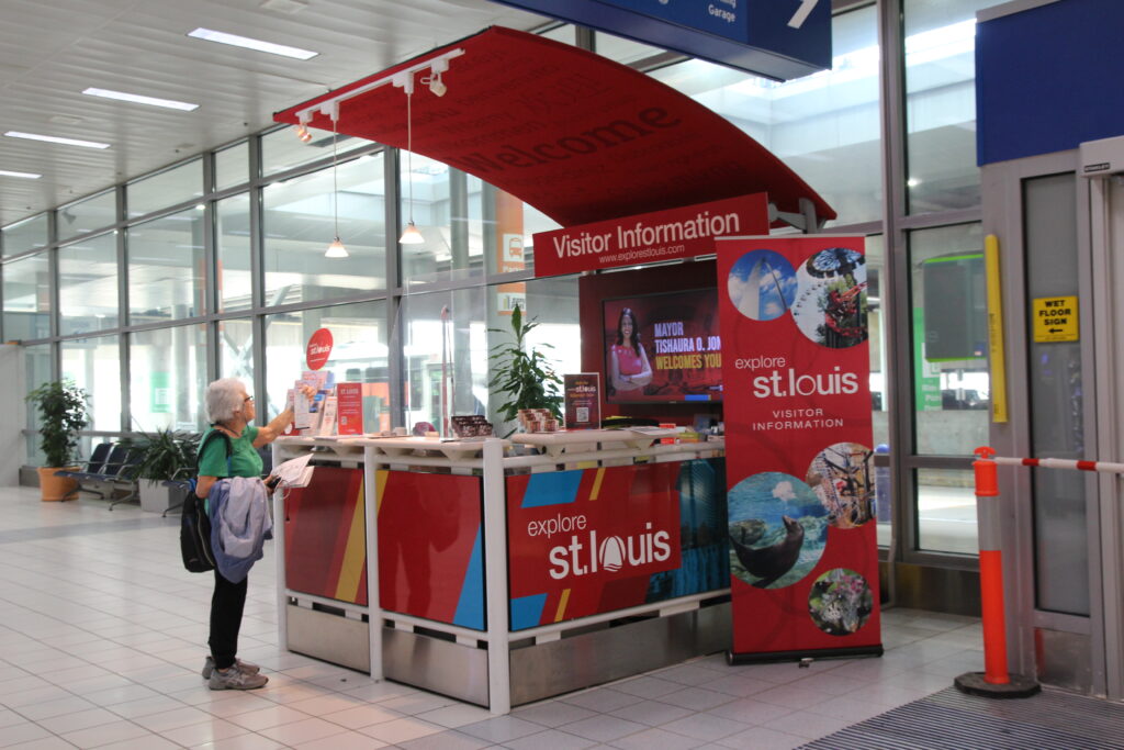 Back To List Explore St. Louis Visitor Center Terminal 2 Baggage Claim Open in Maps Website Other Options Hours Vary USO LOCATION T1 Baggage Claim near Carousel 6 Details >: USO – E31 Closed US Bank LOCATION Terminal 1, Lower Level near C Gates Security Check Point Details >: US Bank Open Airport Police LOCATION Terminal 1, near Door 18 Details >: Airport Police Closed Lost and Found LOCATION Terminal 1, at the Airport Police Department near Door 18 Details >: Lost and Found