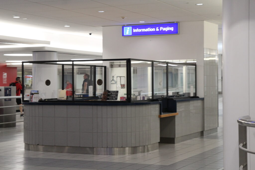 Back To List Information and Paging Daily, 7am to 11pm 314-890-1333 Terminal 1, between Baggage Claim 4 and 5 Open in Maps Other Options Hours Vary USO LOCATION T1 Baggage Claim near Carousel 6 Details >: USO – E31 Closed US Bank LOCATION Terminal 1, Lower Level near C Gates Security Check Point Details >: US Bank Open Airport Police LOCATION Terminal 1, near Door 18 Details >: Airport Police Closed Lost and Found LOCATION Terminal 1, at the Airport Police Department near Door 18 Details >: Lost and Found