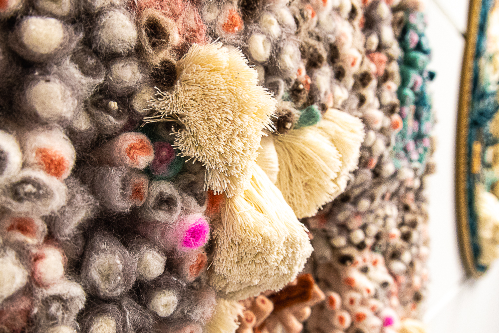 The meticulous, labor-intensive process of creating these intricate weavings mirrors the patterns and cycles observed in nature. Through the manipulation of fibers, Levang translates the complexities of the natural world into visually captivating, texture-rich pieces that provoke a sense of wonder about the underlying structures of life.