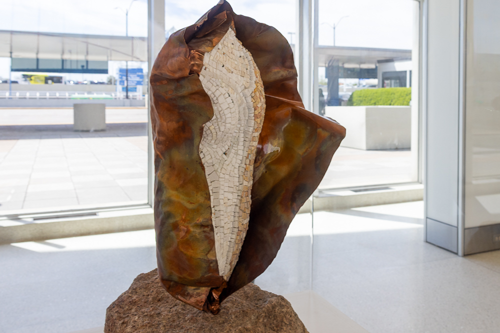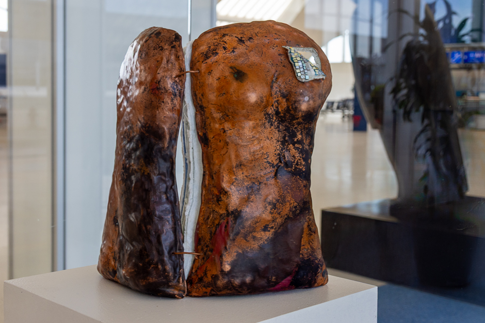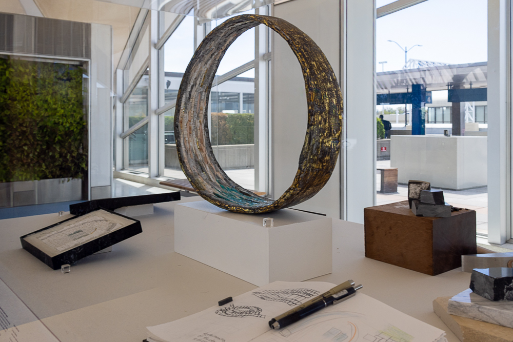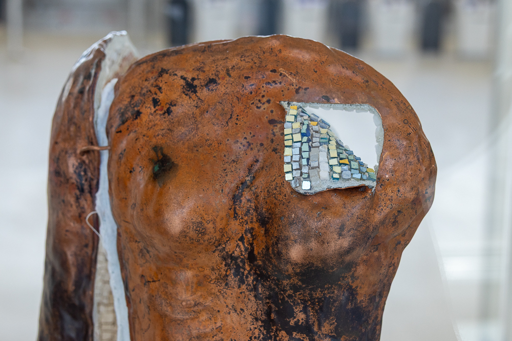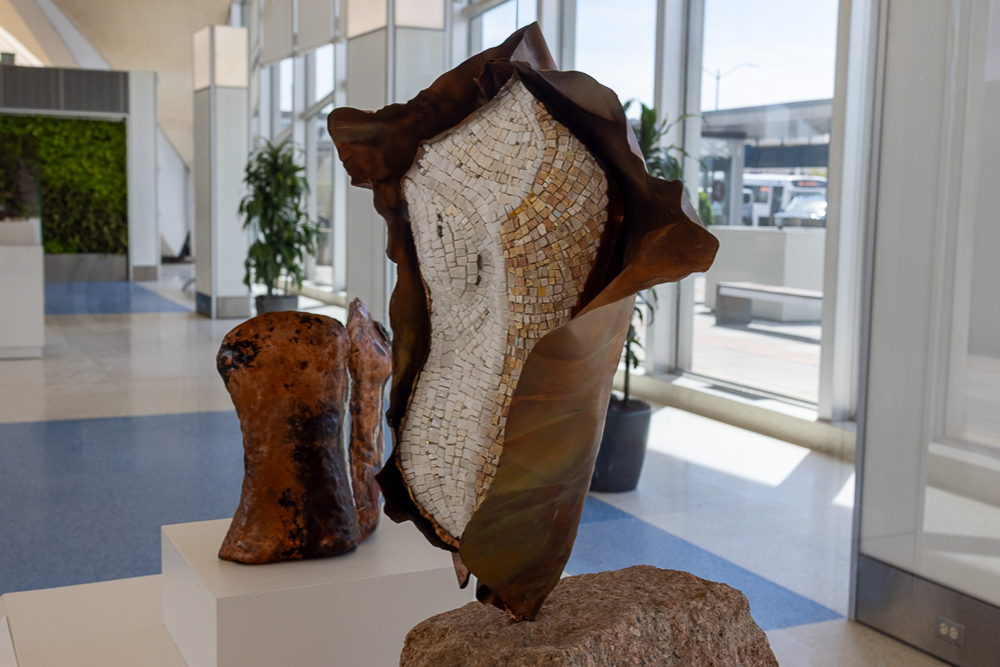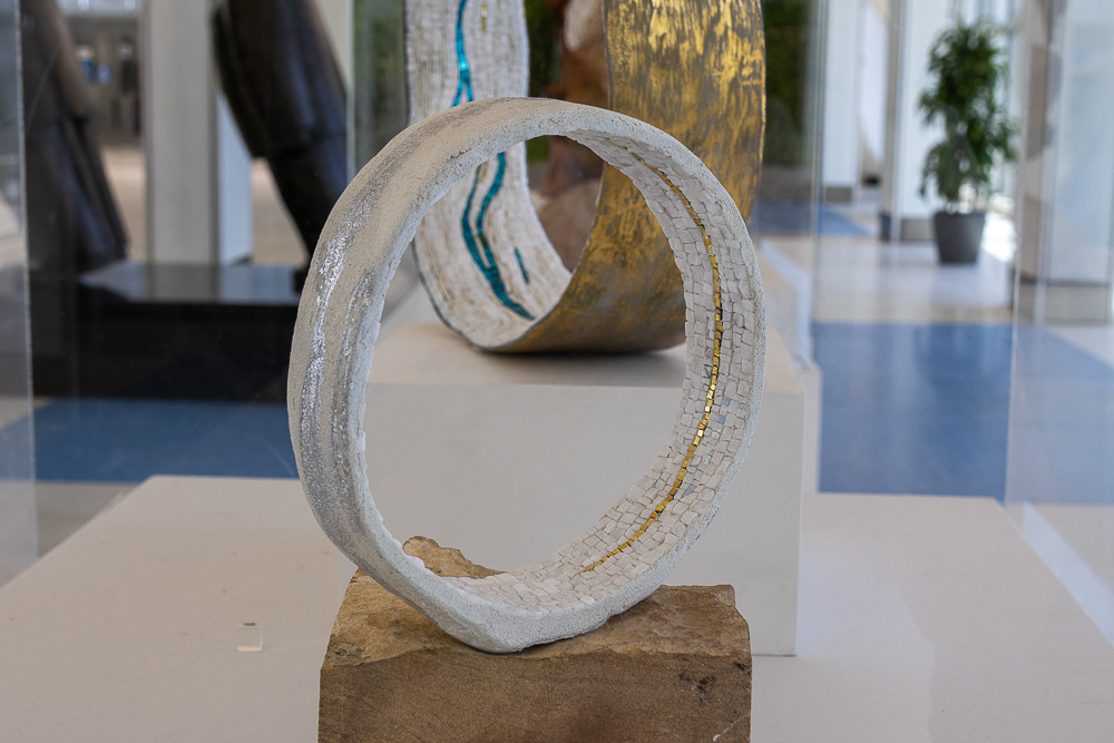 Contemporary mosaic sculptures are featured in all three vitrines. Dating back at least 5,000 years, the art form continues to evolve while still utilizing the same tools, materials, and techniques that were used to create ancient mosaics. Inspired by the artist’s travels, writings and introspection, the works explore some of the reasons we travel and what can be discovered when we go across the country, abroad, or within ourselves.