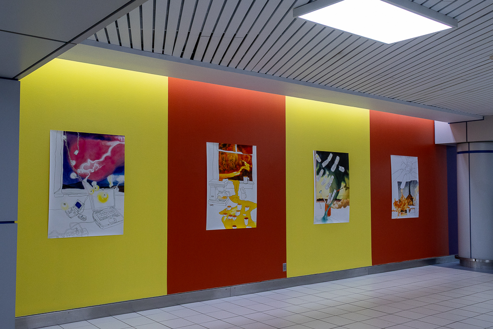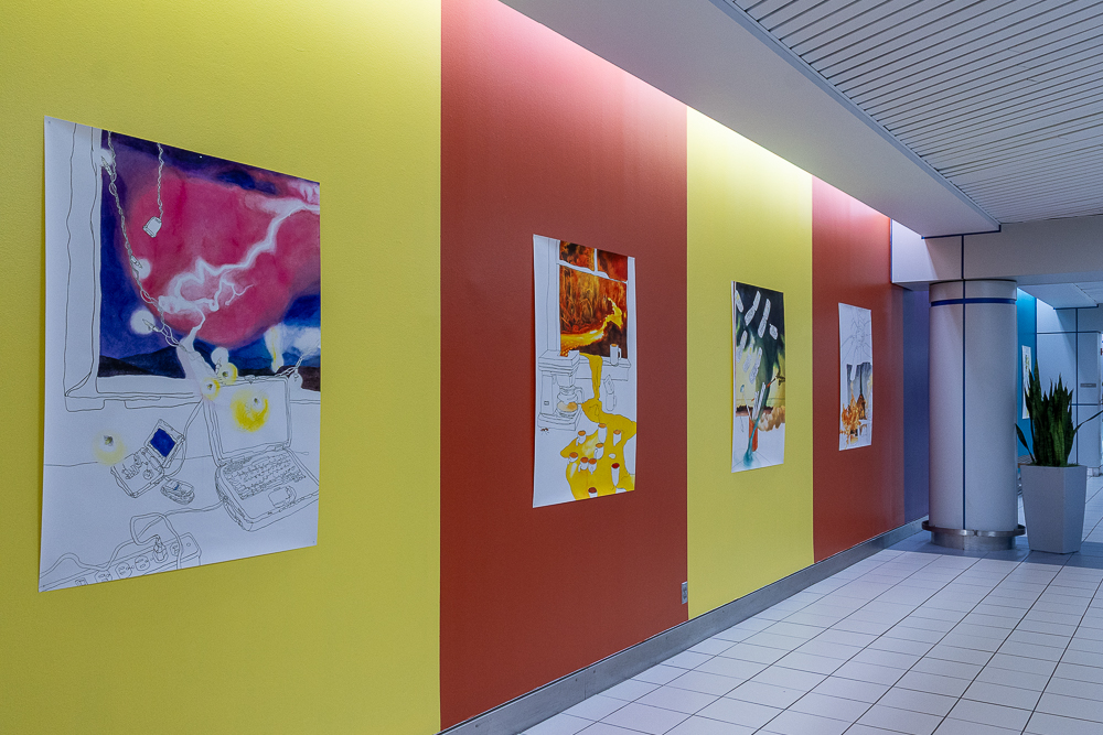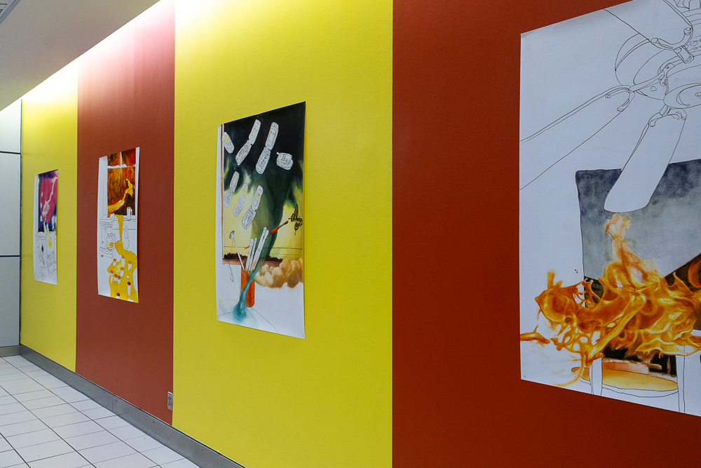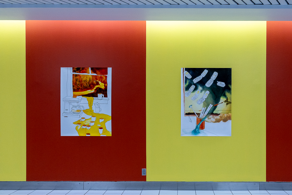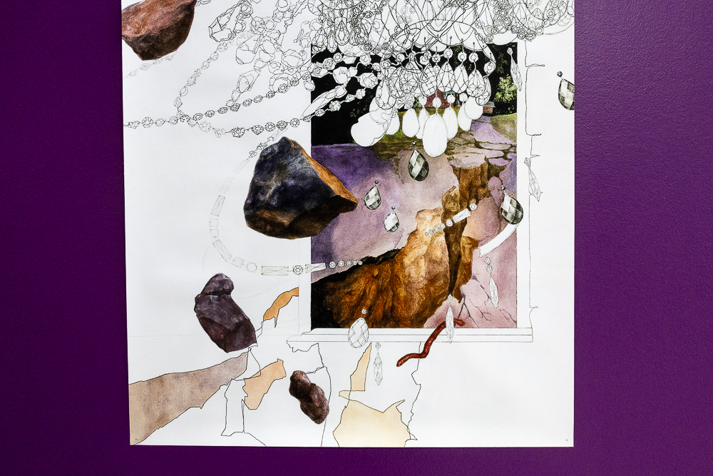 Each disaster enters the interior space and incapacitates the electronic devices we are so dependent on, including cell phones, laptops, music players, and coffee makers. The only survivors of these disastrous events are insects. At around 625,000 species, insects bridge exterior and interior spaces. They are able to cohabit and manage a more highly evolved response to threats from nature than humans are capable of. Cockroaches, spiders, ants, fireflies, and others are inserted into these scenes as unobtrusive beings of intricate beauty and adaptation in the face of overwhelming odds.