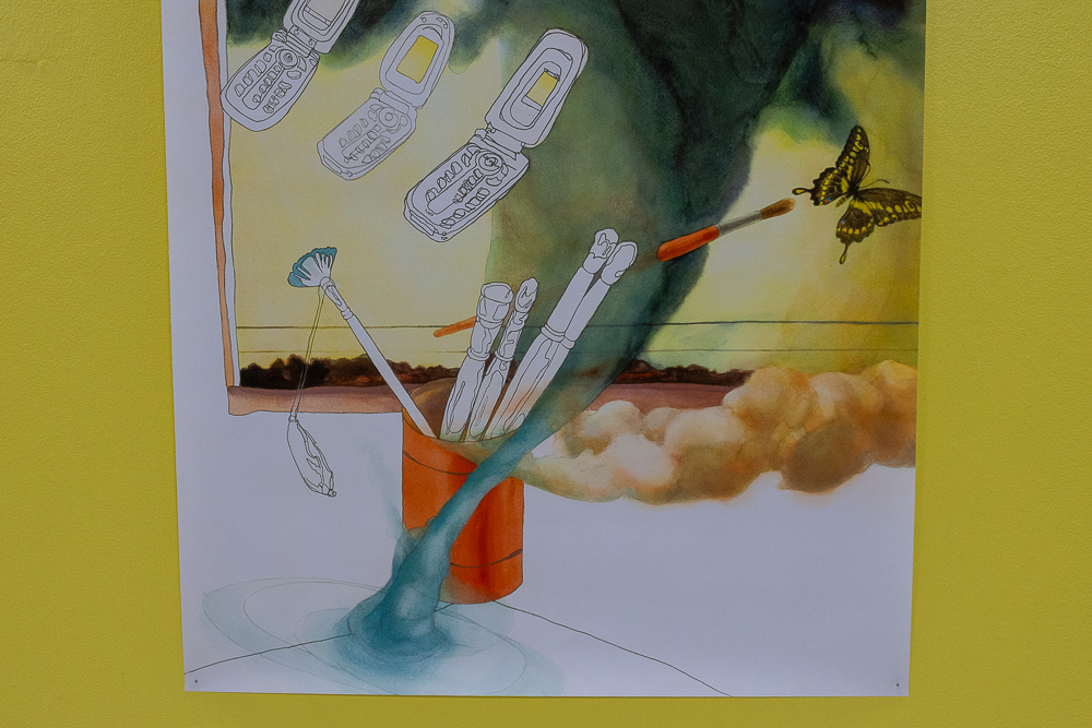 The relationship between nature, our culture, and technology is the subject of my art. I look at the environment, the climate crisis, and our filtered experience of nature in this digital age. In my Studio Window Series, an imaginary view through my studio window examines natural disasters such as tornadoes, lightening, wildfires, volcanic eruptions, earthquakes, tsunamis, and avalanches, along with disasters generated by human misuse of nature.